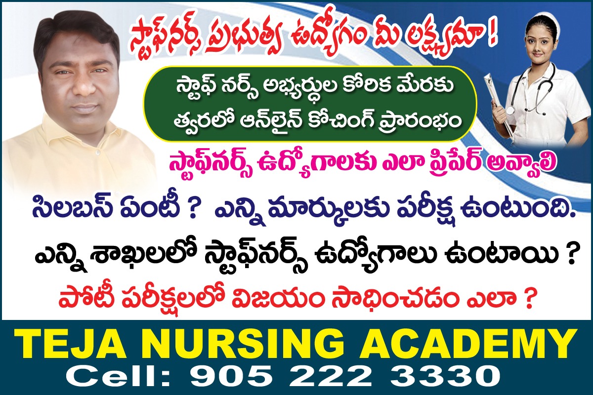 Staff nurse coaching, All paramedical coaching centre in all over Telangana & AP